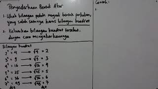 Operasi pada bentuk pangkat dan penyederhanaan. Video tutorial (imath tutorial) ini memberikan materi tentang operasi hitung bentuk akar atau menyederhanakan hasil bilangan akar. Materi matematika smp menyederhanakan penyebut bentuk akar berupa.
